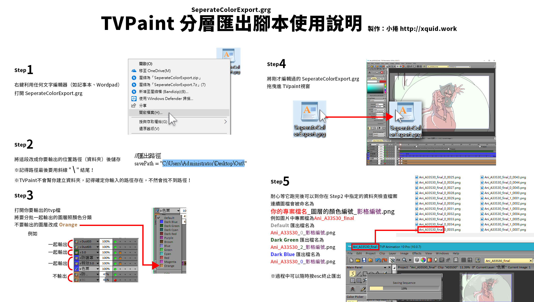 動畫軟體 TV Paint 分層批次匯出腳本